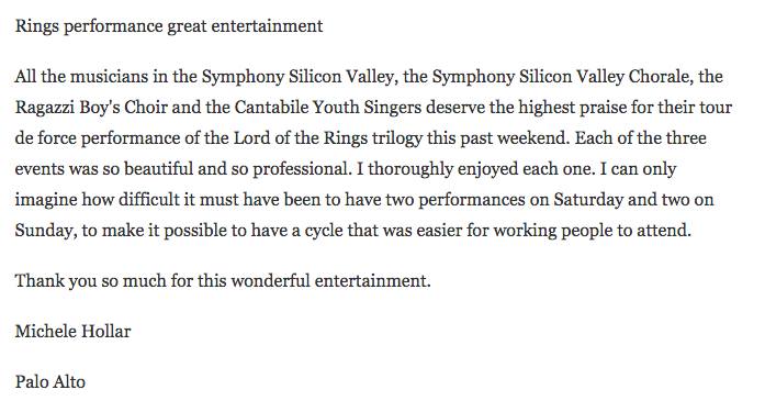 - Symphony Silicon Valley: “Lord of the Rings” like you’ve never heard it before