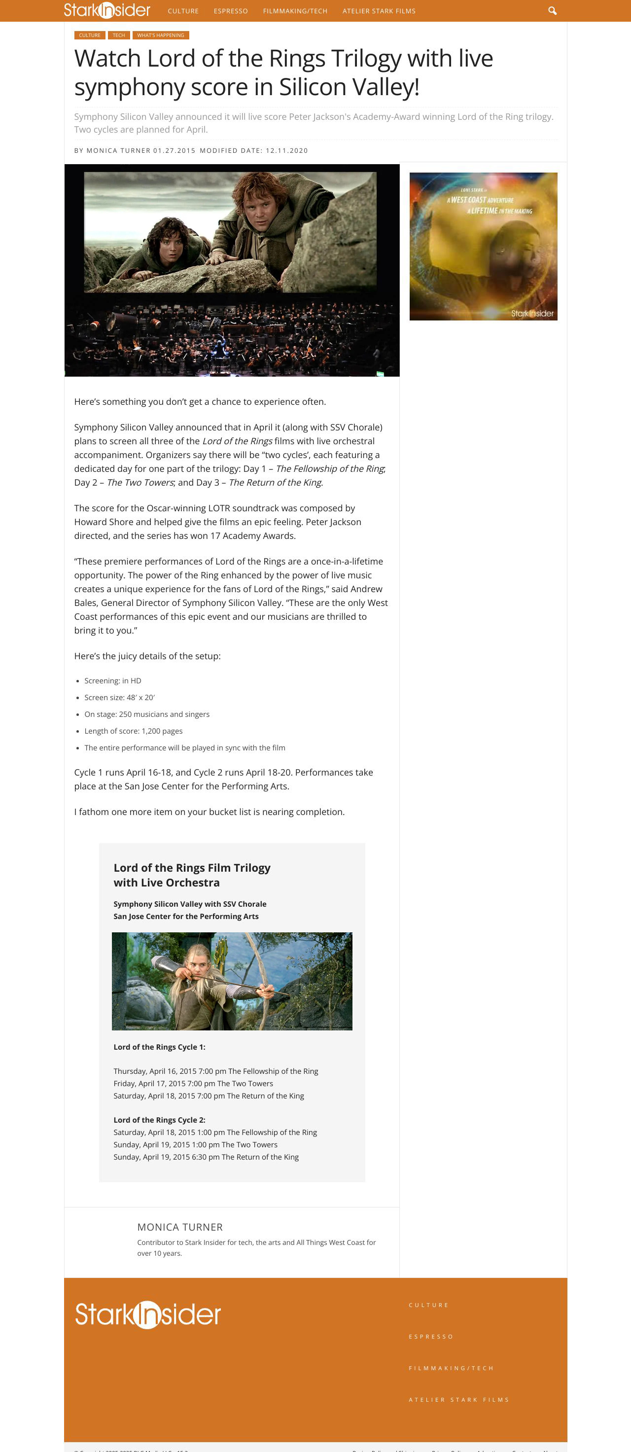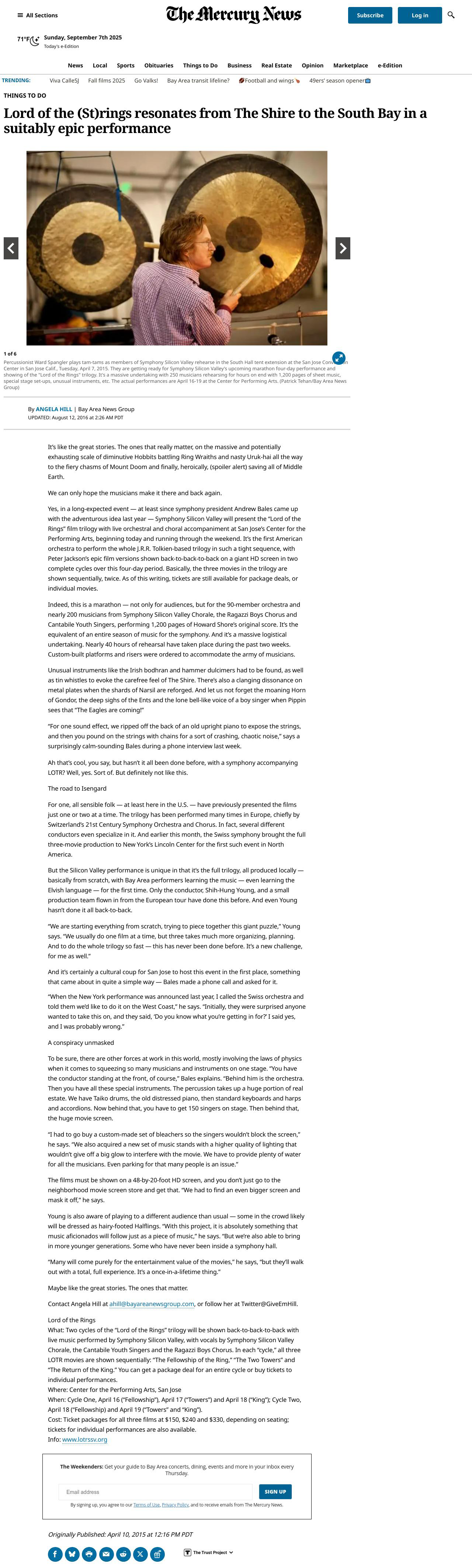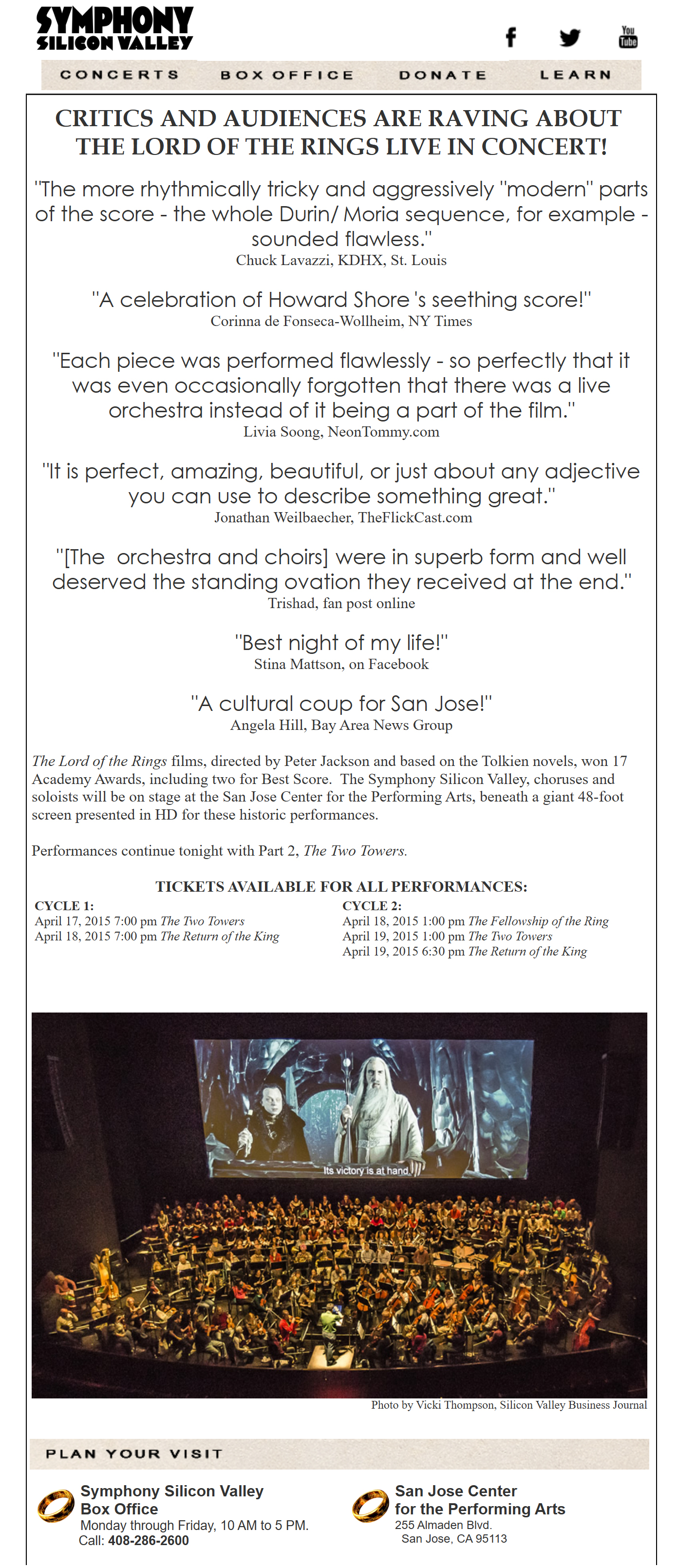 - Watch Lord of the Rings Trilogy with live symphony score in Silicon Valley!