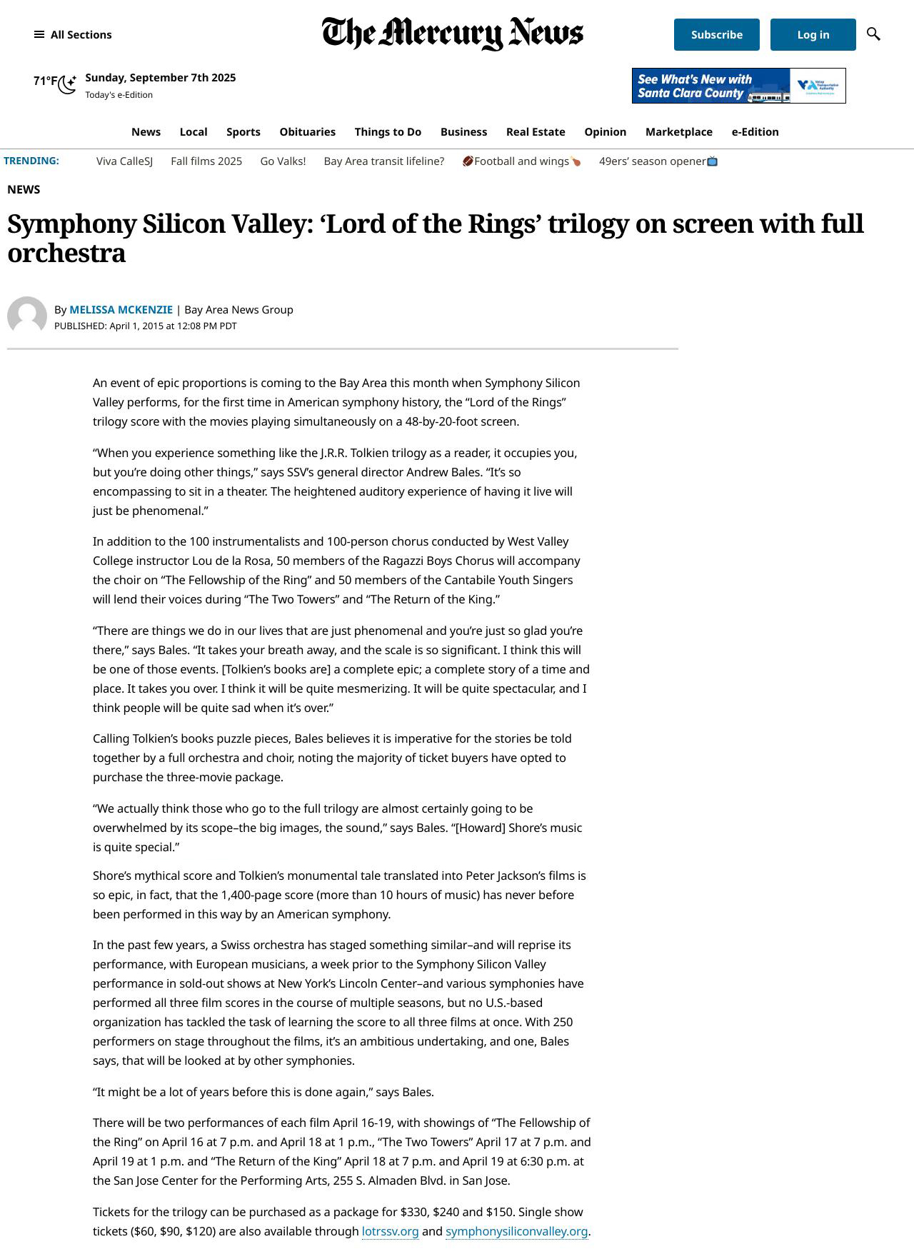 - Symphony Silicon Valley: ‘Lord of the Rings’ trilogy on screen with full orchestra